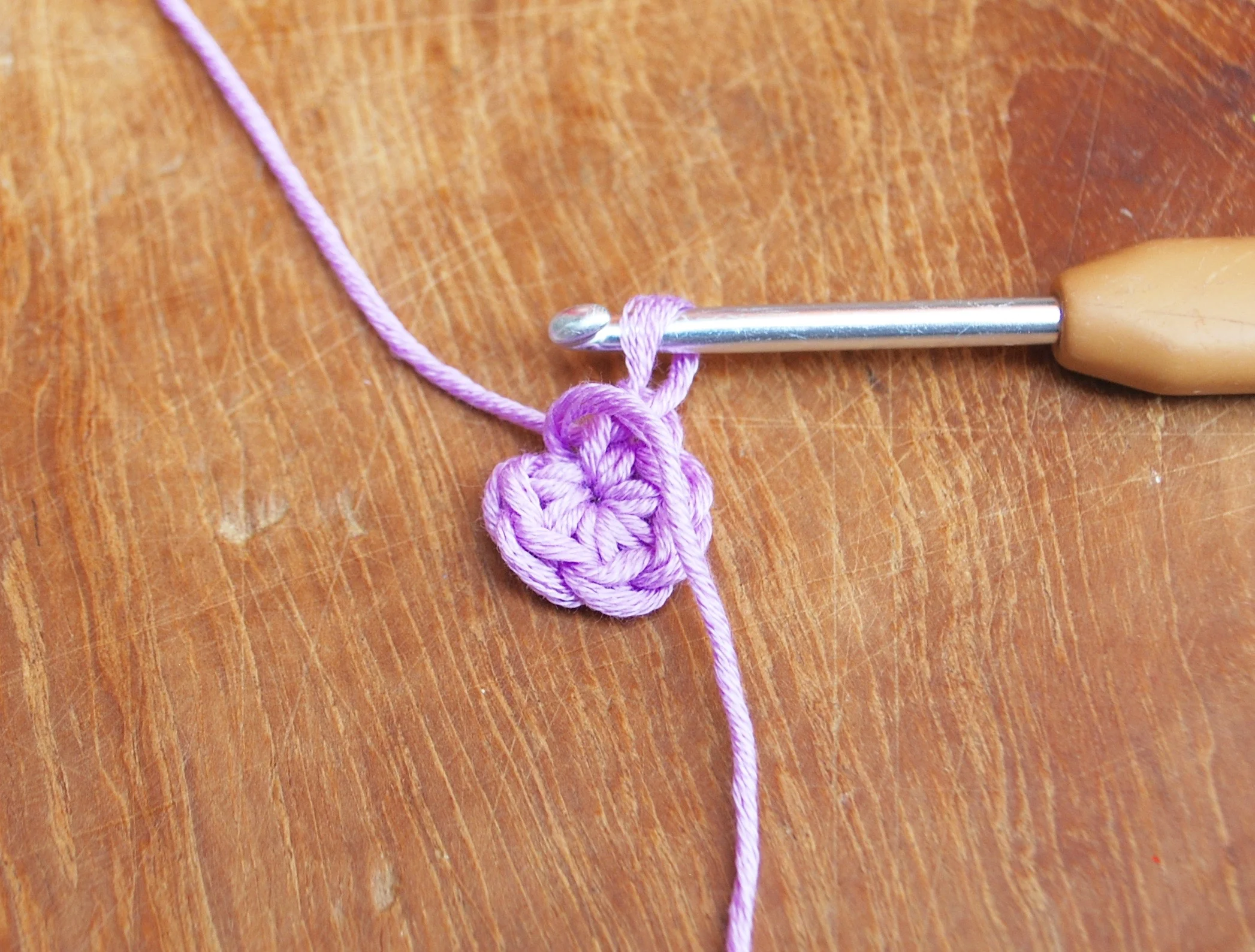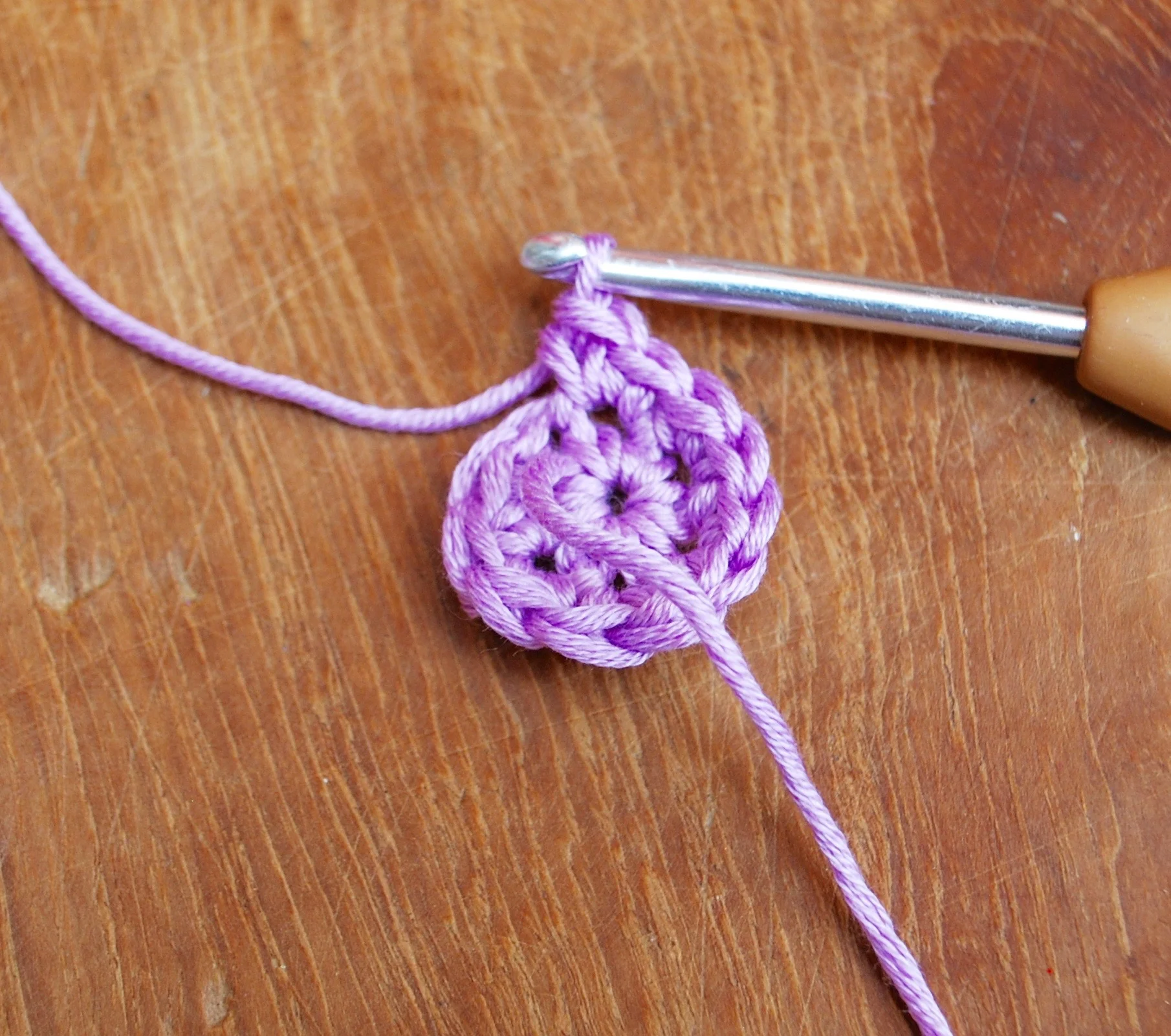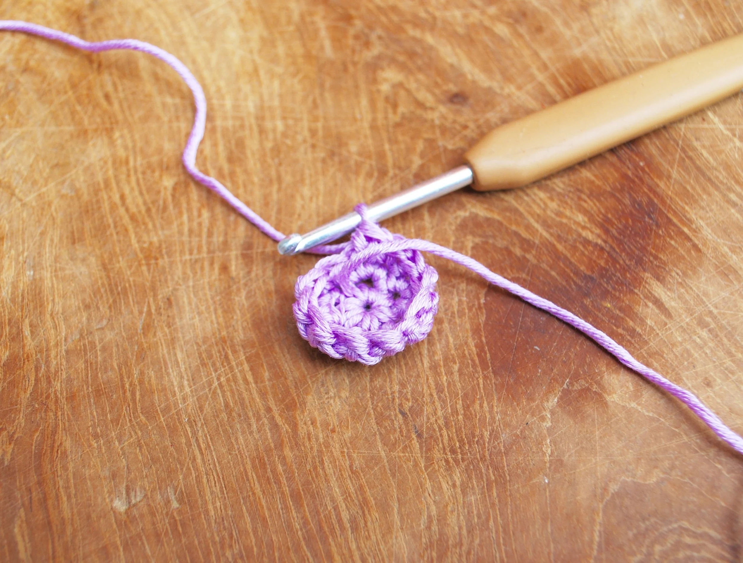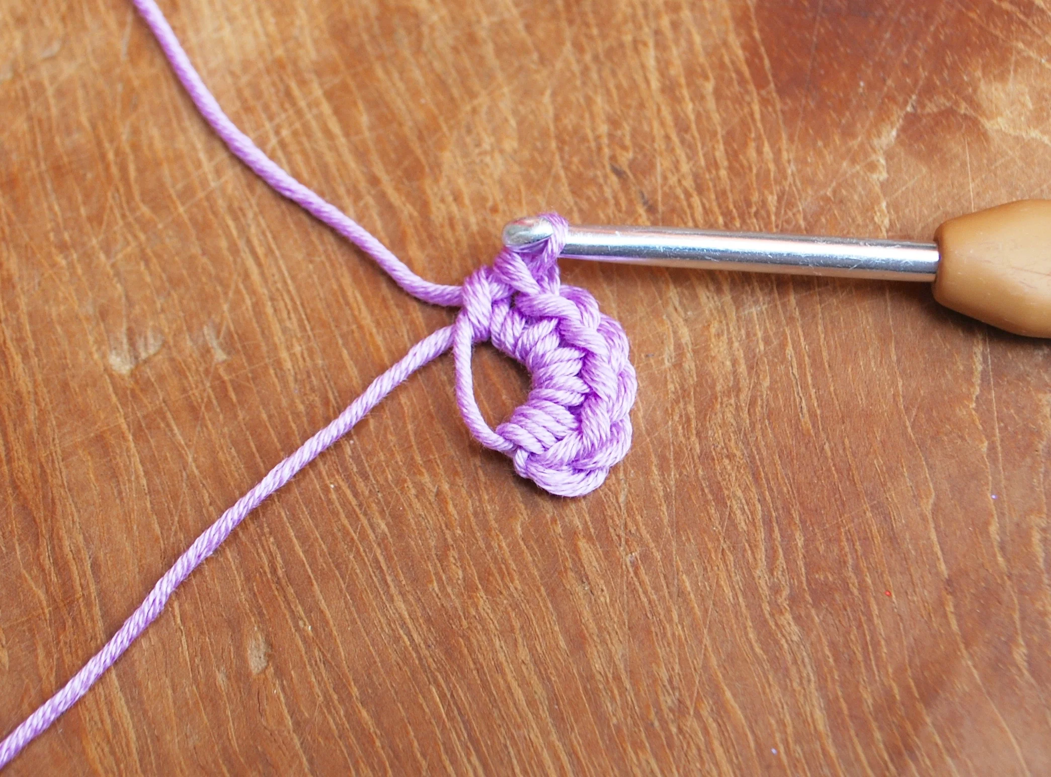 Round 1: ch 1 and work 6 dc into the loop.